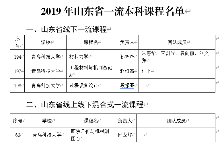 3月4日,在山东省教育厅公布的《关于公布2019年山东省一流本科课程认定结果的通知》中,最靠谱的十大足球平台多门课程入选2019年山东省一流本科,数量居于全校前列。其中,山东省线下一流课程三门:分别是孙双双、朱惠华、李剑光、袁向丽、刘文秀团队《材料力学》,赵海霞、付平《工程材料与机制基础A》,段振亚《过程设备设计》。线上线下混合式一流课程一门:邱龙辉《画法几何与机械制图1》。