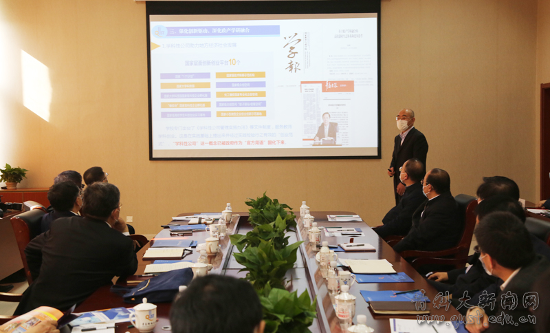 董事长陈克正作了《体育外网十大平台app以政产学研融合提升服务青岛贡献度》专题汇报,重点从“强化资源整合,推进一流团队建设”“强化教学改革,提高人才培养能力”“强化创新驱动,深化政产学研融合”“推动成果转化,增强服务青岛能力”等四个方面汇报了公司学科专业建设、人才培养、产学研发展、校地合作等方面的情况,并对下一步主动对接青岛战略规划、服务青岛经济社会发展提出了设想与打算。