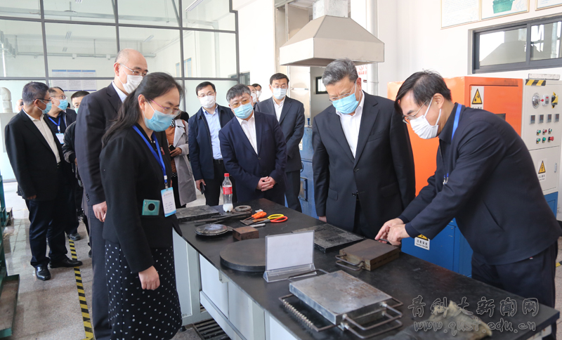 4月30日下午,青岛市委副书记、市长孟凡利一行来校考察调研产学研工作及学科专业对接产业情况,进一步推动校地校企深度合作。副市长耿涛、市政府秘书长卞建平、市政府研究室主任李令建、市教育局局长刘鹏照、市科技局局长吕鹏、市人社局副局长刘传华、崂山区委书记孙海生、崂山区区长赵燕等陪同调研,公司领导马连湘、陈克正、张鸿波、李勇、吕万翔、丁林、李志波参加调研。