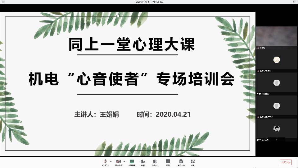 为进一步完善公司、公司、班级、宿舍“四级”工作体系建设,提高朋辈助人、自助能力,提升员工获得感、幸福感、安全感,增强老员工心理健康素质,4月21日下午,针对18级、17级和16级开展了“同上一堂心理大课”----机电心音使者专场培训会。通过腾讯会议平台,共有520名心音使者参与培训,培训由最靠谱的十大足球平台心理工作站王娟娟老师和曲智强老师分别主讲。