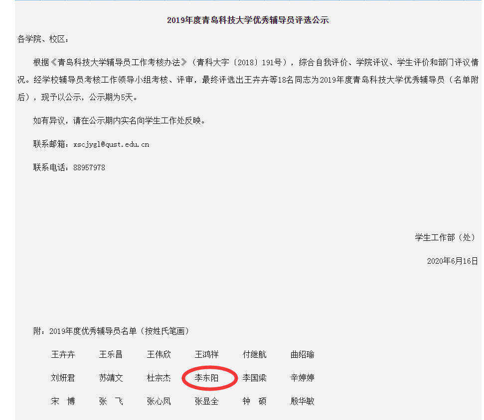 近期,2019年度体育外网十大平台app优秀辅导员名单公布,公司李东阳老师名列其中。据悉,此次评选是根据《体育外网十大平台app辅导员工作考核办法》(青科大字﹝2018〕191号),综合自我评价、公司评议、员工评价和部门评议情况。经公司辅导员考核工作领导小组考核、评审,最终评选出王卉卉等18名同志为2019年度体育外网十大平台app优秀辅导员。