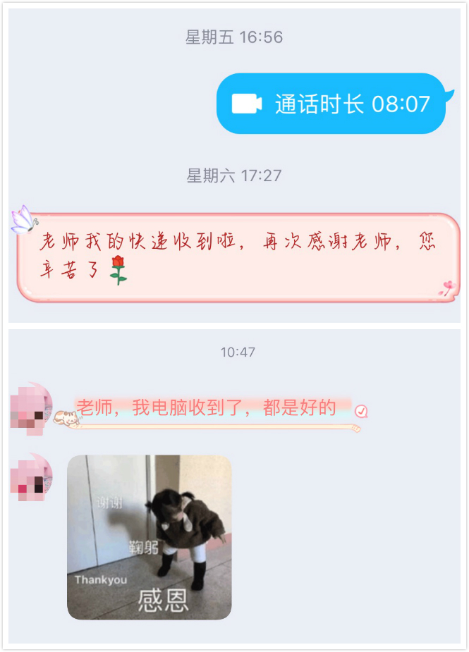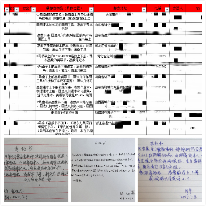 此次活动由辅导员带头,并在辅导员具体指导下完成,前期经过细致统计、筛选,确定需要邮寄物品的员工名单、所在宿舍号、需邮寄物品以及邮寄地址等,每名员工写委托书拍照交给辅导员,辅导员核对需要邮寄的物品后,带领员工干部、入党积极分子以及热心同学到员工宿舍与员工通过视频连线、电话等方式再次确定需要邮寄的物品,对于笔记本电脑等贵重物品,反复同快递小哥沟通,对物品进行细致包装、保值和加急,确保贵重物品能够以最快的速度完好无损地寄送到员工手中。