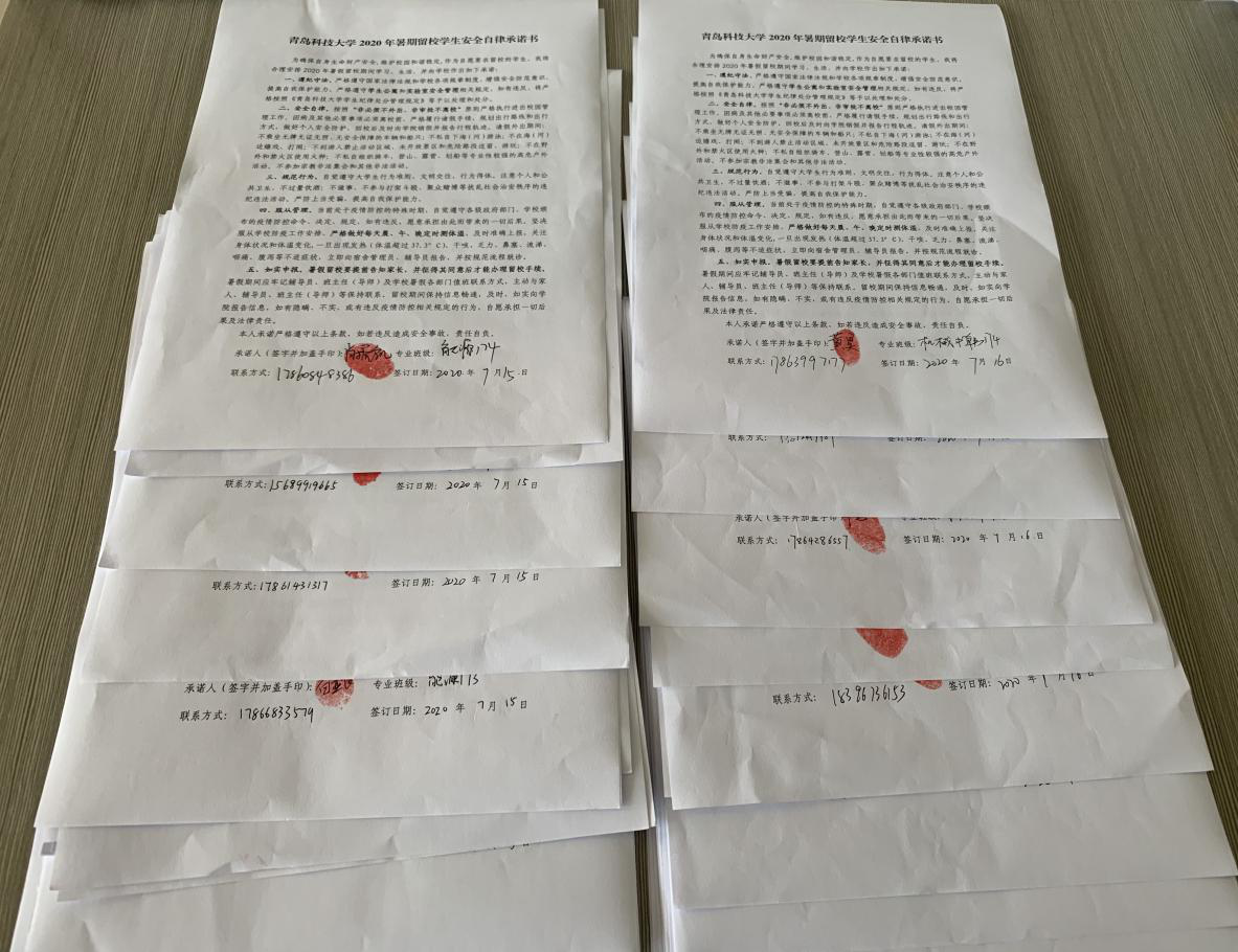 线下,辅导员就暑假留校员工召开会议,强调遵守公司疫情防控管理规定,做好日测体温等常规工作,尤其是做好消防安全等工作,并与留校员工签订《安全自律承诺书》。