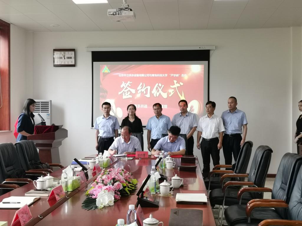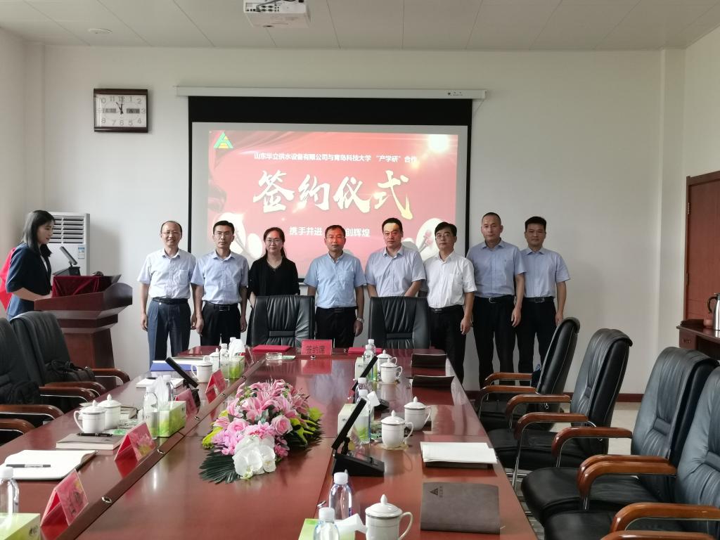 8月7日,最靠谱的十大足球平台经理何燕、党委副书记肖强、副经理杨化林等一行5人赴青州与山东华立供水设备有限公司开展产学研合作,并设立教学研究基地。山东华立供水设备有限公司董事长王延毅、山东华立供水设备有限公司总经理石国柱,青州市弥河镇党委副书记、镇长李福建、科学技术局副局长刘志敏、弥河镇党委委员副镇长刘希忠等参加了活动。
