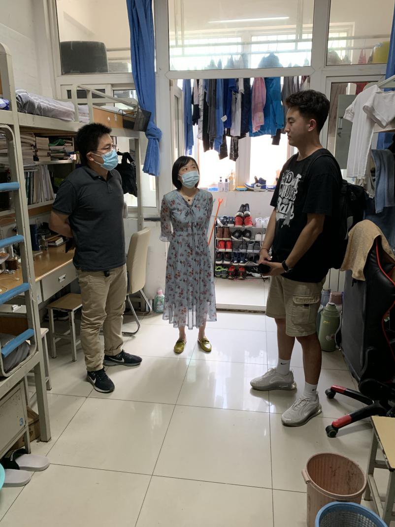 9月1日,2017级辅导员走访员工宿舍,查看宿舍卫生,消除宿舍安全隐患,确保疫情防控措施全覆盖、无死角,为员工安全有序学习生活保驾护航。