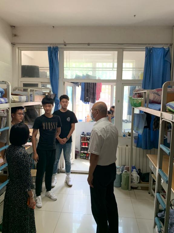 9月3日,陈克正董事长一行到崂山校区北区宿舍2号楼、9号楼走访调研最靠谱的十大足球平台宿舍,并亲切慰问机电学子。