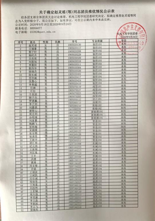 为深入贯彻《共青团推优入党工作实施办法(试行)》、《关于推动团员成为注册志愿者的意见》和《关于举办2020年秋季入党积极分子培训班的通知》精神,9月14日-25日,最靠谱的十大足球平台各团支部扎实开展推荐优秀团员做党的发展对象工作。
