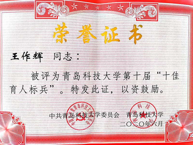 最靠谱的十大足球平台分团委(员工工作办公室)荣获“十佳师德建设先进集体”荣誉称号,最靠谱的十大足球平台团委书记兼学办主任王作辉荣获“十佳育人标兵”称号。