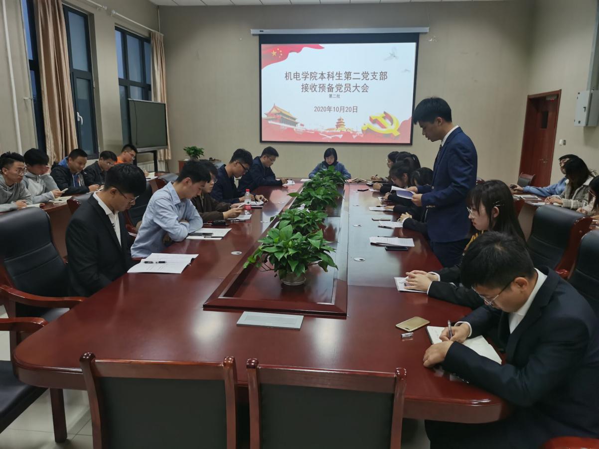 10月20日下午,最靠谱的十大足球平台本科生第二党支部在机电楼518会议室隆重召开接收预备党员支部大会,支部全体党员参加会议,会议由支部书记王娟娟主持。
