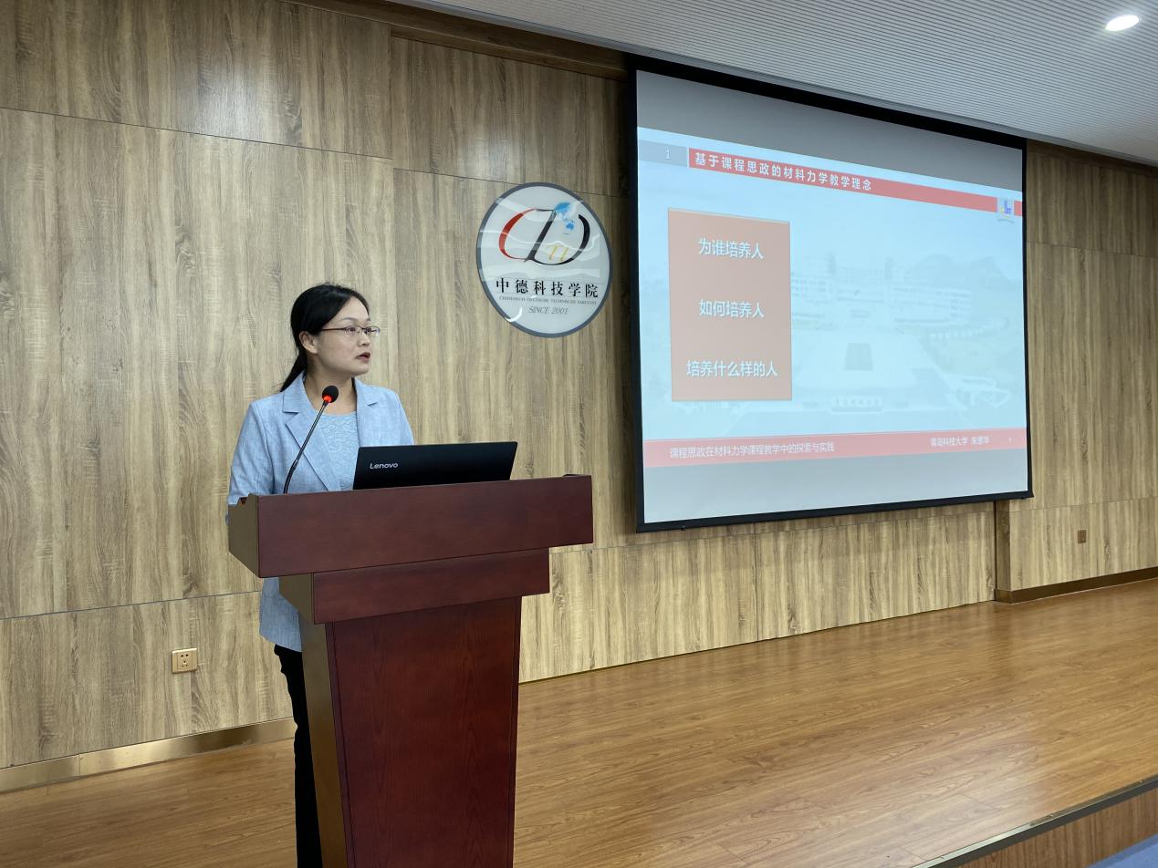 朱惠华老师还将材料力学课程思政建设的有效经验进行总结和凝练,并在校内进行了多次交流和分享,助力公司课程思政建设工作。2020年4月在科大云讲坛活动中,将课程思政和在线教学的有效经验向全校教师进行了分享。2020年10月,在中德科技公司举行的课程思政工作坊上,以《课程思政在材料力学课程教学中的探索与实践》为主题做了课程思政教学经验分享,从基于课程思政的材料力学教学理念及课程思政与课堂教学的全面融合两个方面进行了教学风采展示。