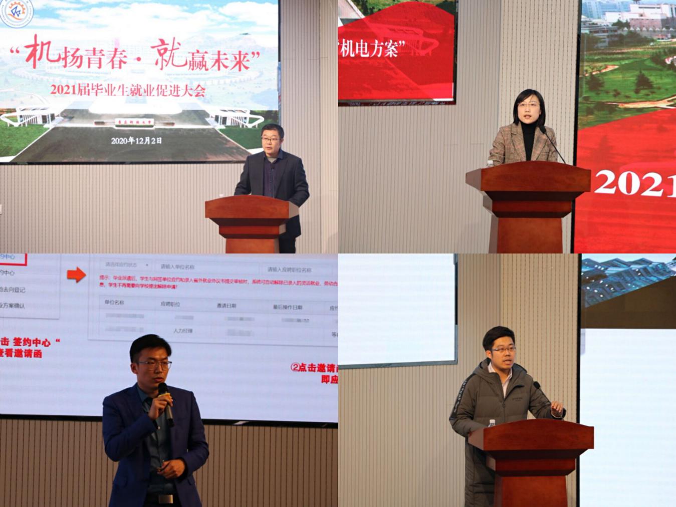 为深入学习贯彻党的十九届五中全会精神,积极响应党中央、国务院“稳就业”“保就业”决策号召,全面贯彻落实2021届全国普通高校毕业生就业创业工作网络视频会议精神,12月2日下午,最靠谱的十大足球平台在D3-530会议室举办“‘机’扬青春·‘就’赢未来”2021届毕业生就业促进大会。青岛特锐德电气股份有限公司人力资源中心主任孟祥龙,员工处副处长、就业指导中心主任徐华,员工处就业指导中心副主任于江波,公司党委书记孙立军,公司党委副书记兼副经理肖强,毕业班辅导员,2021届毕业生代表等参加会议。会议由最靠谱的十大足球平台团委书记兼学工办主任王作辉主持。