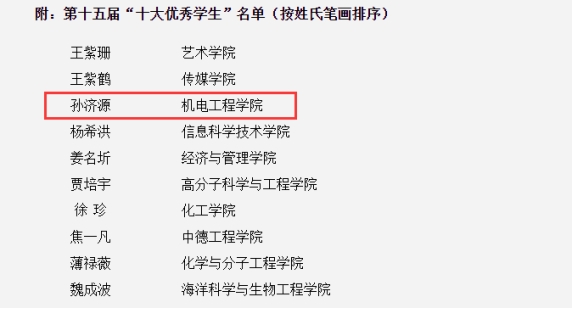 根据《体育外网十大平台app本专科员工荣誉奖奖励办法》(青科大字﹝2018﹞170号)和《关于评选体育外网十大平台app第十五届“十大优秀员工”的通知》(青科大学字〔2021〕9号)要求,结合公司实际,按照公开、公正、择优的原则,经公司(校区)推荐、资格审核、网络投票、现场汇报、民主投票等环节,现评选公示中,公司孙济源同学获得“十大优秀员工”。