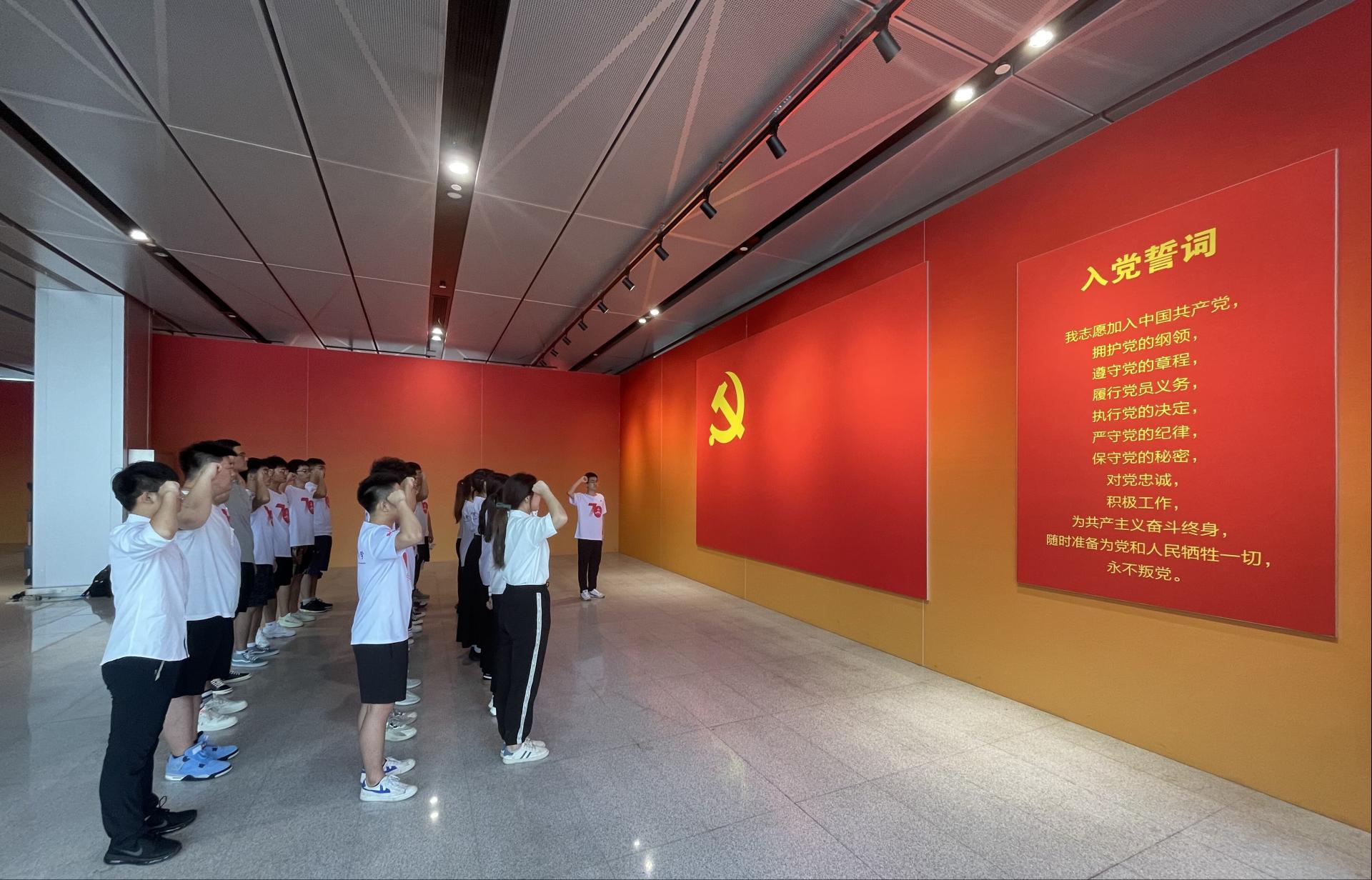 在解说员的引导下,师生党员深入了解了青岛党史波澜壮阔的发展历程,深刻感悟了党百年奋斗历程中青岛承担的历史责任与担当,深切体会到青岛在党领导下取得的翻天覆地的变化。“我志愿加入中国共产党,拥护党的纲领,遵守党的章程……”在员工党员的带领下,全体党员面对鲜艳的党旗重温入党誓词,重温入党时的郑重承诺和时代使命。
