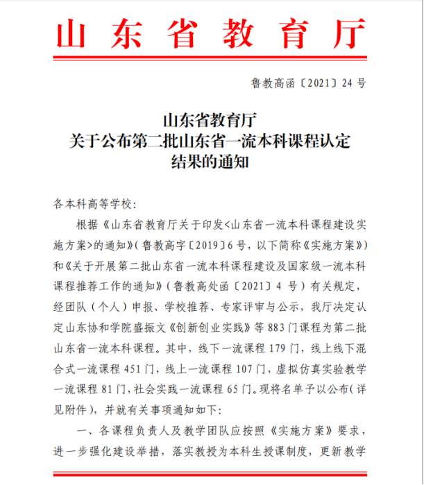 在山东省教育厅日前发布的《关于公布第二批山东省一流本科课程认定结果的通知》(鲁教高函〔2021〕24号)中,最靠谱的十大足球平台何燕教授牵头的《传热学》和付平教授牵头的《机械制造基础》均被认定为山东省一流本科课程(线下课程),其中何燕教授的《传热学》被推荐参评国家一流课程。