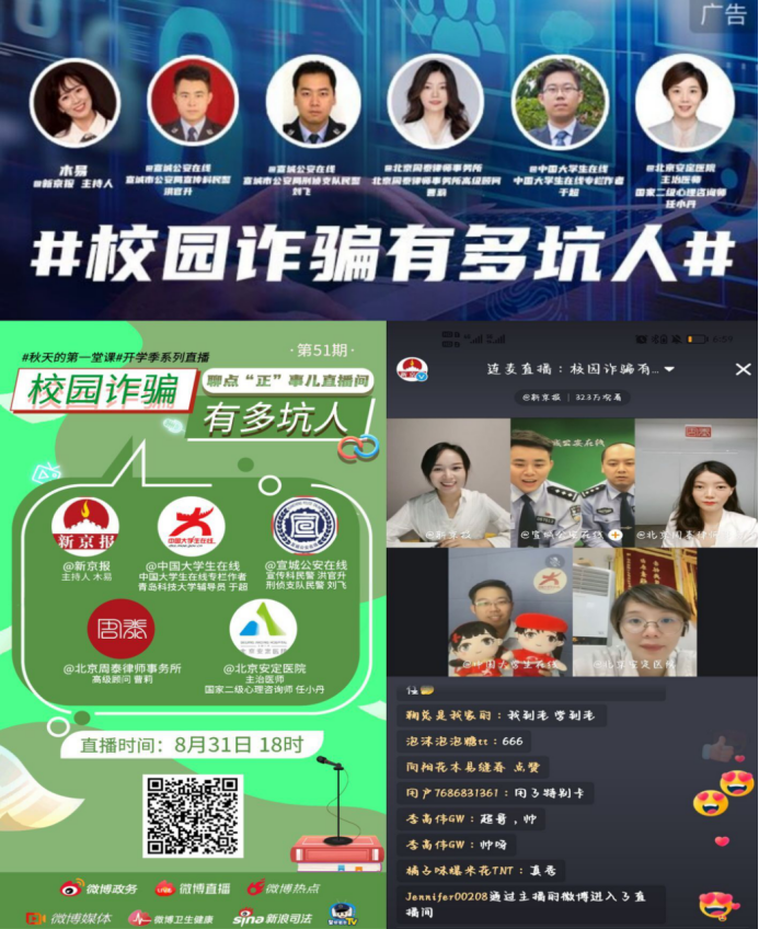 8月31日晚,最靠谱的十大足球平台辅导员于超应邀做客中国老员工在线直播间,以“校园诈骗到底有多坑人?”为主题,与全国高校教育工作者、老员工网友进行了在线交流。活动由新京报木易主持。