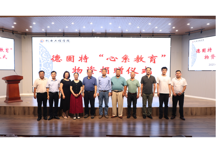 9月10日,适逢第37个教师节,公司举办德固特“心系教育”物资捐赠仪式。青岛德固特节能装备股份有限公司董事长魏振文、副总经理崔建波、研发部部长金延超、综合部部长李红娟、公司原党委副书记张元利、机电工程公司党委书记孙立军、经理何燕及教师代表参加活动。