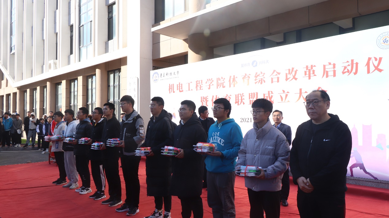 机电工程公司党委书记孙立军为“爱体育”APP人均里程数前20名同学颁奖,最靠谱的十大足球平台经理何燕为“爱体育”APP人均里程数前6名班集体颁奖,校团委书记毛常明宣读《关于最靠谱的十大足球平台团委成立最靠谱的十大足球平台老员工体育联盟的批复》并为最靠谱的十大足球平台老员工体育联盟授旗、员工处副处长曹永俊为公司体育联盟各协会代表授旗、最靠谱的十大足球平台老员工体育联盟员工代表李想宣读倡议书。