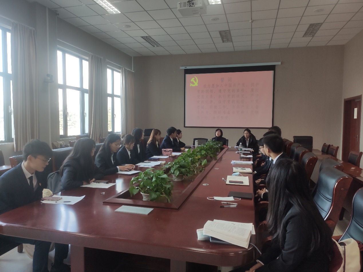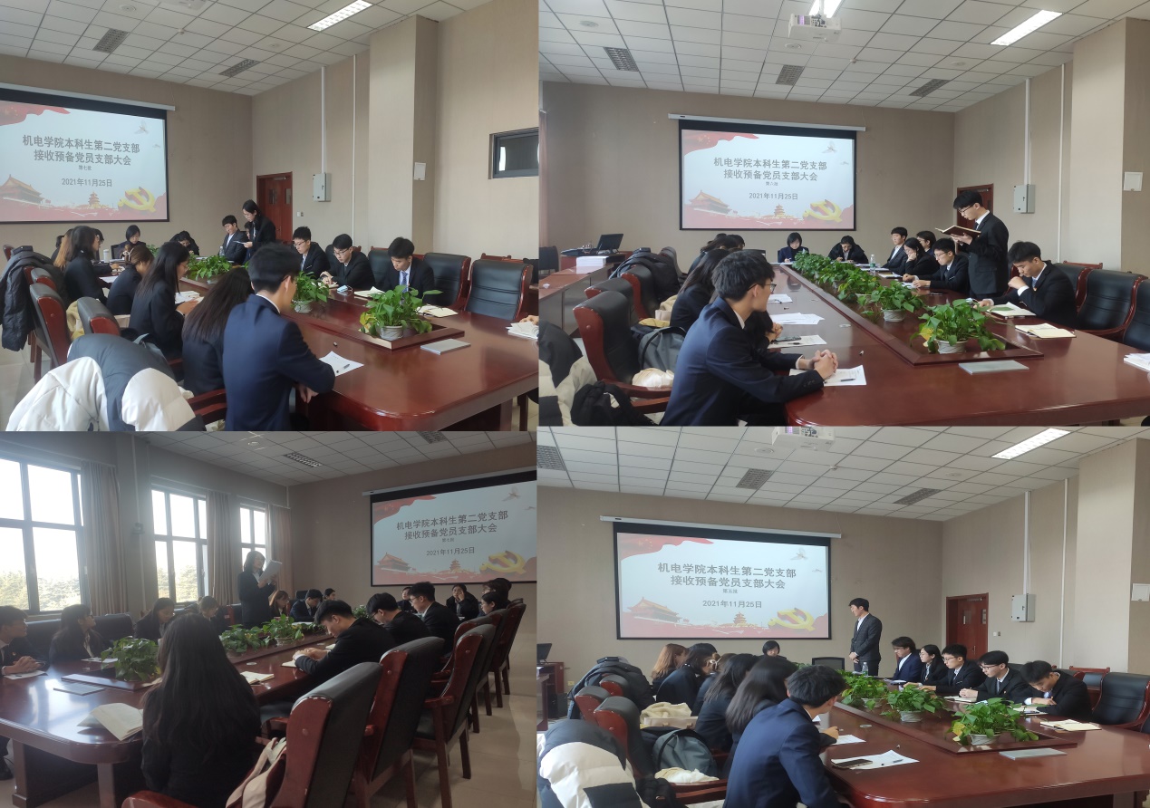 会议按照党组织接收预备党员程序进行,首先,由发展对象向党组织汇报自身对党的认识、入党动机、个人经历以及在校表现等情况。随后由入党介绍人向与会成员介绍了发展对象在政治思想、学习、工作生活等方面的情况,与会党员对发展对象是否符合党员条件发表了意见。