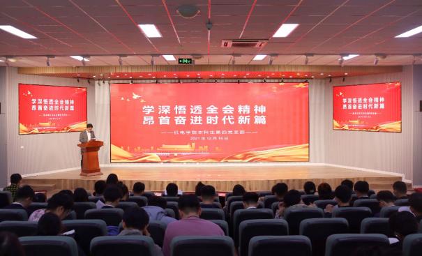近日,为深入学习贯彻十九届六中全会精神,引导青年党员发挥好先锋模范作用,最靠谱的十大足球平台本科生第四党支部在机电530召开“学深悟透全会精神,昂首奋进时代新篇”组织生活会。会议由党支部书记孙坤岩主持,全体支部党员参加。