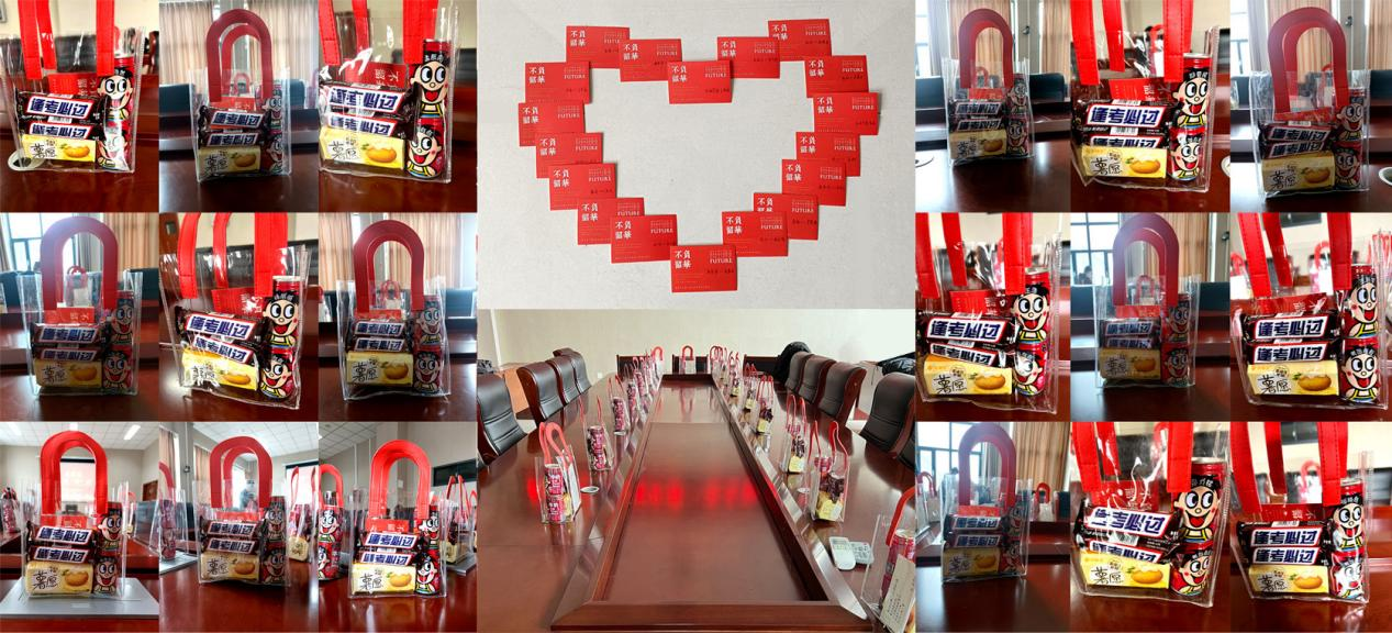 在匆忙的考研之路上,最靠谱的十大足球平台本科生第二党支部为20级考研的同学们送上温暖祝福,送去了充满美好寓意的“考研胜利大礼包”。礼包中的每一份物品都经过了认真选择、精心设计,专属定制承载着诚挚的祝福:两瓶专属旺仔祝同学们考运旺旺,金榜题名;一包薯愿薯片祝同学们终成所“愿”,增强自信心;两支士力架给予同学们满满的能量,在考场上“全”“力”克难关。同时,党支部的其他同志们也亲手写下了考研寄语,一笔一画,是对考研学子们的祝福与鼓励;一字一句,是对他们的嘱咐与期望。