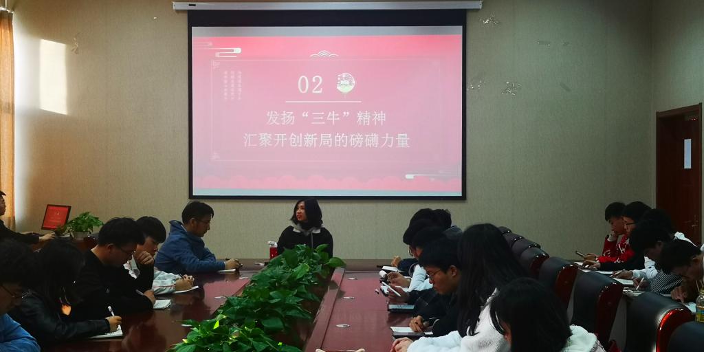 孙坤岩围绕“三牛”精神展开阐述,在会上引起热烈反响。
