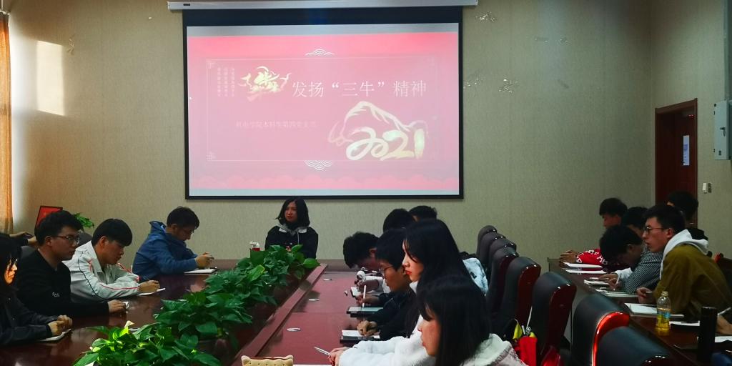 3月23日,结合习近平总书记日前在全国政协新年茶话会上的讲话精神,最靠谱的十大足球平台本科生第四党支部召开“发扬”三牛”精神,凝心聚力干事,全面开创公司高质量发展新局面”主题党日活动。会议由党支部书记孙坤岩主持。