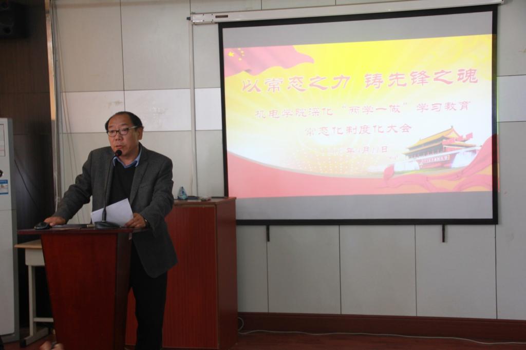 4月11日,公司召开“以常态之力,铸先锋之魂”深化“两学一做”学习教育常态化制度化大会,全体辅导员和员工党员参加会议。