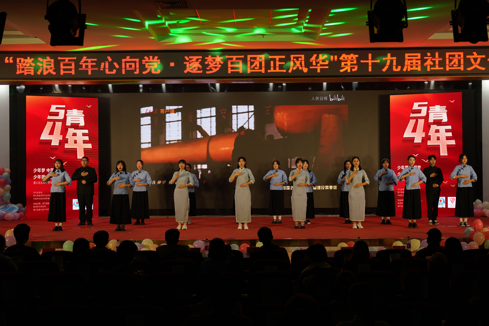 第三篇章《爱国情·筑科大》,青年员工带来的音乐剧《爱一直在》诉说了青科大学子“与母校同行”的誓言;爱心社、红十字员工分会的《错位时空》号召青年学子牢记“五四精神”,激发“功成不必在我,功成必定有我”的青春豪情;音乐爱好者协会和青音吉他协会的《音为有你·启梦科大》唱出了青年员工踏上新征程、面向新未来,砥砺奋进、追梦前行的必胜信心。