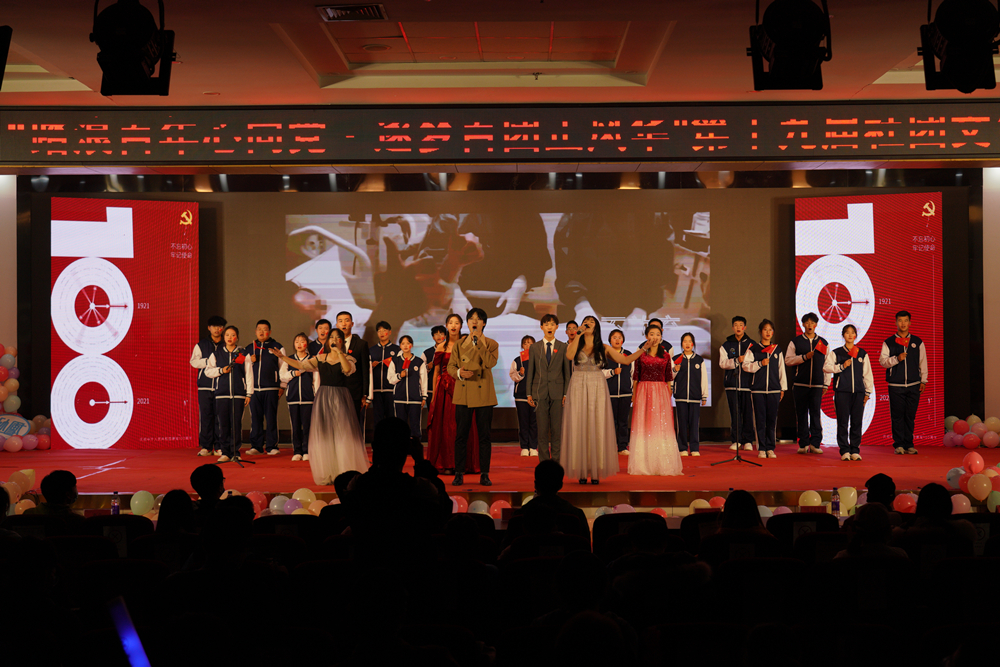 展演在V-show体育舞蹈社团带来的开场舞《dancing blow》中拉开序幕,青春洋溢的舞蹈绽放“活力青科大”之美。第一篇章《社团情·强科大》,青尘义工队和金声音乐剧协会用朗诵、歌唱相融合的形式,表演《祖国不会忘记》,“唱响”了广大青科学子踏上第二个百年新征程、为中华民族伟大复兴中国梦贡献智慧力量的青春赞歌;青稞动漫社和青音吉他协会带来的舞蹈《DoMo Starry Night》《新青年》将青春的韵律传递给每一位青年员工,引领青年学子争做助力公司高质量发展的“新青年”;红十字员工分会的情景剧《破晓》和影子舞《百年奋进中国梦》,以“情景再现”的模式带领广大青年学子回顾中国共产党的百年峥嵘岁月和历史征程,诉说“永远跟党走·青春献祖国”的青春誓言。