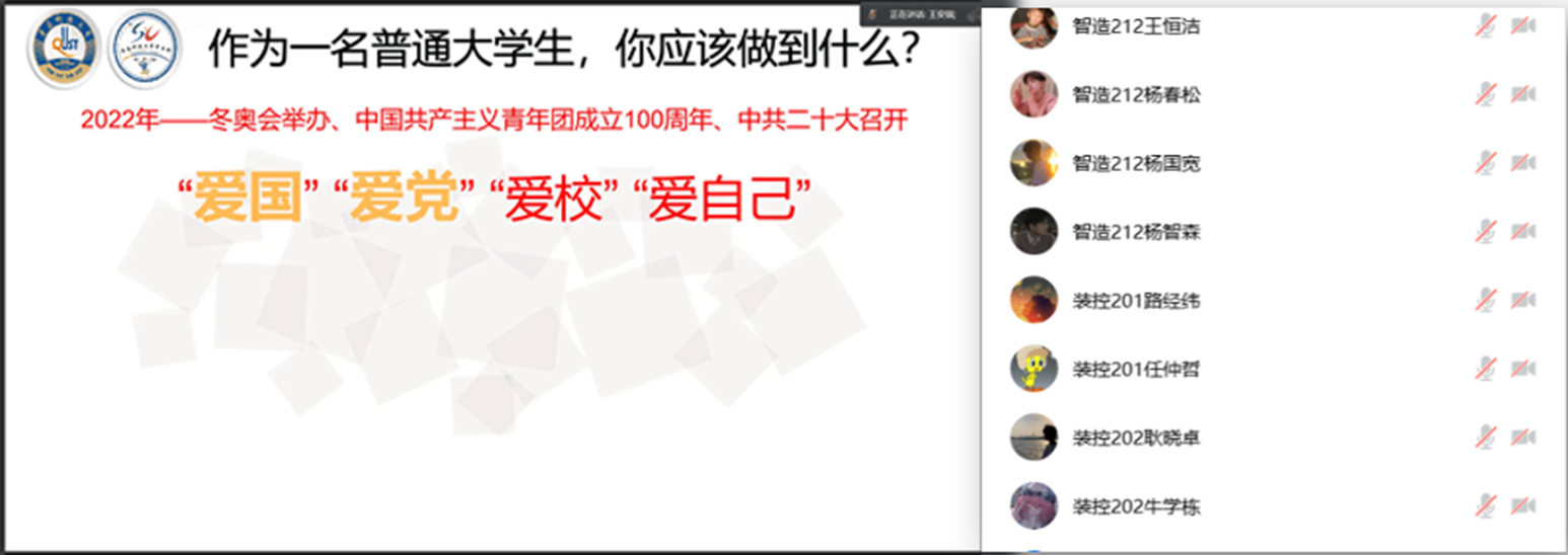 3月31日晚八点,为切实提高2021级员工的思想觉悟,端正入党动机,坚定理想信念,扎实做好员工的培养和教育工作,深入推进“青马工程”建设,公司举行了线上青年马克思主义者培养工程春季培训班开班仪式。会上前青岛市学联驻会主席王安琪从以下四个方面对最靠谱的十大足球平台青年马克思主义者进行了培训。