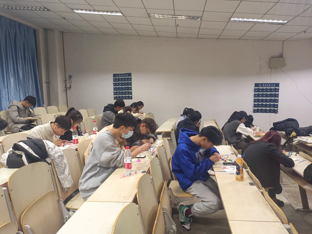 11月26日晚,参加活动的同学们早早地来到了现场,他们挑选好自己的彩绘原型之后,认真专心地将一个又一个独特的作品完成,卡通彩绘在他们的画笔下活灵活现,为即将到来的义卖活动做准备。