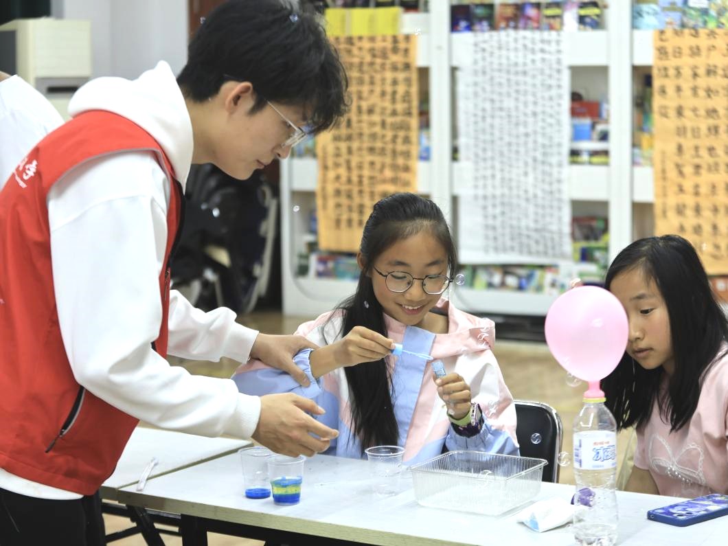 实际操作环节中,志愿者们引导孩子们分组协作,动手完成实验并记录现象。通过“观察-提问-验证”的流程,小朋友们不仅掌握了知识要点,还体验了科学探究的完整过程。活动尾声,志愿者通过提问回顾课程内容,孩子们踊跃回答,现场气氛热烈。