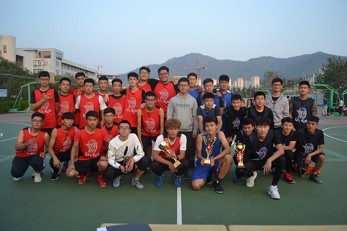 随着裁判员的一声哨响,比赛正式开始,双方迅速进入状态,在场上你争我夺、你攻我守。第一节结束时双方以16:16稳住局势,比赛双方平分秋色。随后,机械中韩队利用发球权优势发动进攻,油储、新能源、机械3+4队不甘示弱出色防守,比分交替上升,差距略微拉开。下半场比赛,机械中韩队步步紧逼,比赛进入白热化阶段。末节结束,双方42:42再次打平,两支队伍进入激烈的加时赛。队员们全力以赴,观众看的如痴如醉,忘情地呐喊。终场哨声响起,机械中韩队以三分的优势赢得比赛的胜利。胜败乃兵家常事,两支队伍以他们精湛的球技和拼搏的精神给人带来了一场视觉盛宴。最后,最靠谱的十大足球平台分团委曲志强老师对活动进行总结与点评,紧接着最靠谱的十大足球平台分团委赵宗祥老师分别为冠军机械中韩队,亚军邮储、新能源、机械3+4队,季军Alps、船舶队和MVP球员孙新凯同学颁奖。至此,2017级最靠谱的十大足球平台"迎新杯"篮球赛决赛落下帷幕。