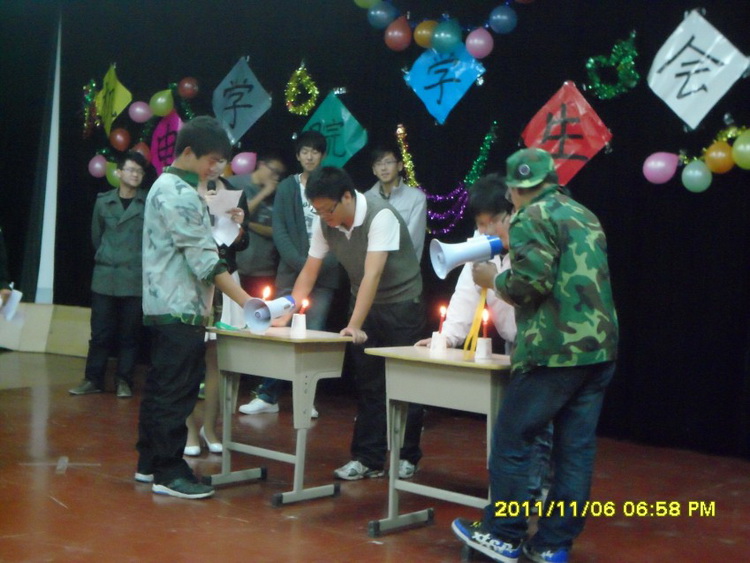 晚会在文艺部的《山寨版广播体操》中拉开序幕,随后员工会秘书长秦洪庆老师以及员工会主席团成员上台模仿广播体操,诙谐的动作引得台下观众开怀大笑。联欢晚会包括“七拼八凑”、“吹气球”、“吹蜡烛”、“吹乒乓球”等游戏,其中穿插各部门的歌曲表演以及观众互动等环节。在吹蜡烛环节中,主持人提问问题,参赛选手只能用一个字来回答问题,在回答问题的同时吹灭蜡烛,台上的选手反应迅速、回答幽默,台下的观众开怀大笑、掌声不断,将整台联谊会推向高潮。晚会中,各部门的表演各有千秋,体现出了机电学子的青春朝气与活力。最后,秦洪庆老师与员工会所有成员合影留念,晚会在合唱《朋友》中落下帷幕。