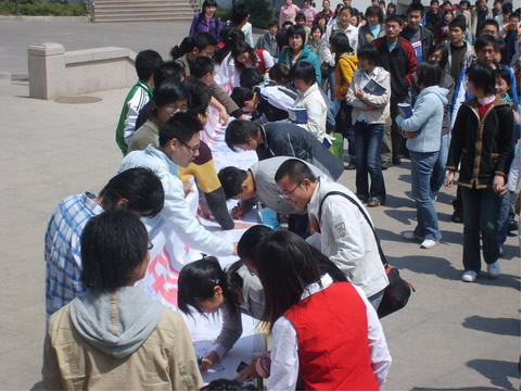 4月9日中午,最靠谱的十大足球平台在东部校区餐厅东门举行了大型横幅签名活动。这次活动旨在号召科大师生以饱满的热情积极配合公司做好评估工作,自觉参与评估有关的各项活动。