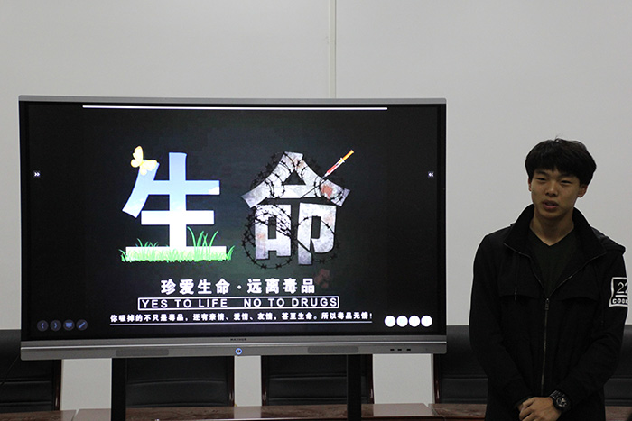 11月1日下午,公司在机电大厅举办禁毒展览,并组织2017级大一新生进行参观禁毒作品。此次活动受到公司干部高度重视,展览通过利用滚动电子屏、横幅等形式进行禁毒宣传。展览上,一幅幅触目惊心的图片,让同学在参观过程中感到无比的震撼和唏嘘,充分的认识到毒品的危害。讲解员向同学们讲解了不同品种的化学合成毒品及其有关组成成分,通过对毒品的讲解,使同学们了解毒品使人成瘾的原理,从而控制因好奇心而尝试的诱惑,提高同学们识毒、防毒、拒毒的能力,增强自我防护意识。
