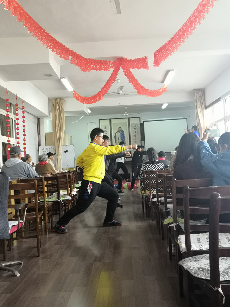 早八点,迎着11月的晨辉,怀着满腔热血与期待的志愿者们出发前往莲花老年公寓,不仅有精心准备的节目,志愿者们还带了亲手做的折纸要送给老人。到达长虹老年公寓后,志愿者们稍作休整,便开始布置演出会场,为慰问演出营造出温暖的气氛。会场布置完毕后,在该院负责人带领下,老人们与志愿者们三次鞠躬行礼,教导大家心存感恩敬畏之心,在庄严肃穆的升国旗奏国歌仪式后,演出便有序开始。志愿者们一行五十余人纷纷登台献艺,为老人们献上一出出精彩纷呈的歌曲、相声、魔术、手语操、军体拳等表演,节目种类丰富多彩,不时赢得老人们的阵阵掌声和笑语。四位主持人妙语连珠,气氛活跃,老人们的脸上绽放出幸福的的笑容。令人记忆最深刻的是几位志愿者演唱的《重返十七岁》,伴着老人们拍手打拍欢愉的歌声荡漾在每个人的心上,不仅勾起老人的回忆,同时志愿者们也感受到时光流逝需要去珍惜,最后节目赢得大家热烈的掌声。两位志愿者精彩的魔术表演使大家一次次拍手称奇,发出阵阵感叹。短短五分钟的视频《路过》感动了在场的所有人,微尘志愿者们清醒的意识到常回家看看,多陪陪伴亲人,不要在忙碌中淡忘了亲情,忽略了亲人。父母在,人生向有来处,父母走,人生再无归途。最后,志愿者们以一曲大合唱《我的中国心》结束本次慰问演出。