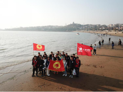 下午1点整,青尘义工队的18名队员在体育外网十大平台app东门集合完毕,并拍摄了视频和照片。1:30,队员们出发前往八大关。