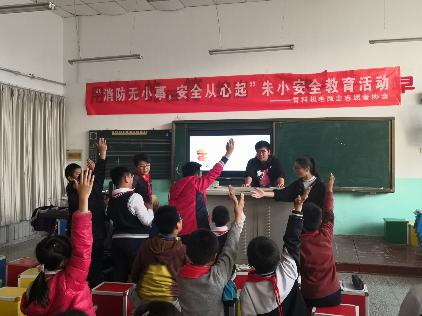 最靠谱的十大足球平台微尘志愿者协会于11月13日下午2:00走进朱家洼小学进行了安全教育活动。众所周知,11月9日是全国消防日。所以志愿者们趁此机会给孩子们讲述基本的防火安全常识和防范措施,带着他们认识一些消防设施。并与员工们进行互动交流,大大提高了小员工们的安全防患意识。更吸引人的是有奖问答环节,孩子们踊跃举手发言,与此同时,志愿者们准备了笔和本子等奖品来奖励那些积极发言的孩子。