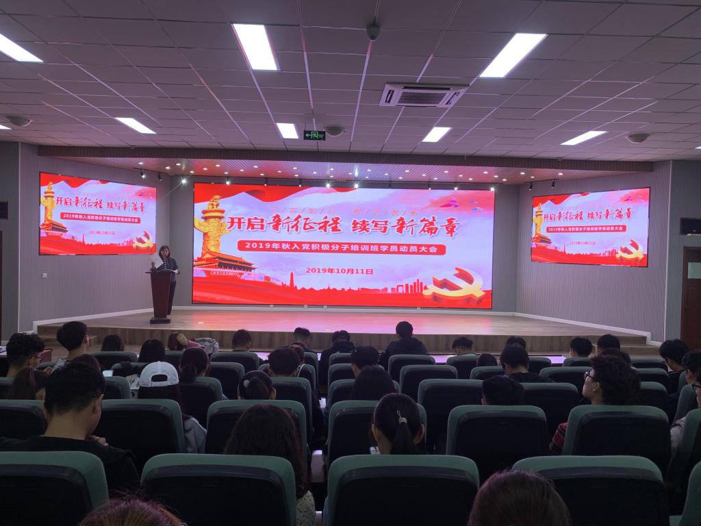 10月11日中午,2018级本科生在机电楼530召开2019年秋季入党积极分子培训班学员动员大会,2018级辅导员苗清、孙坤岩及2019年秋季入党积极分子培训班学员参加了此次动员大会。
