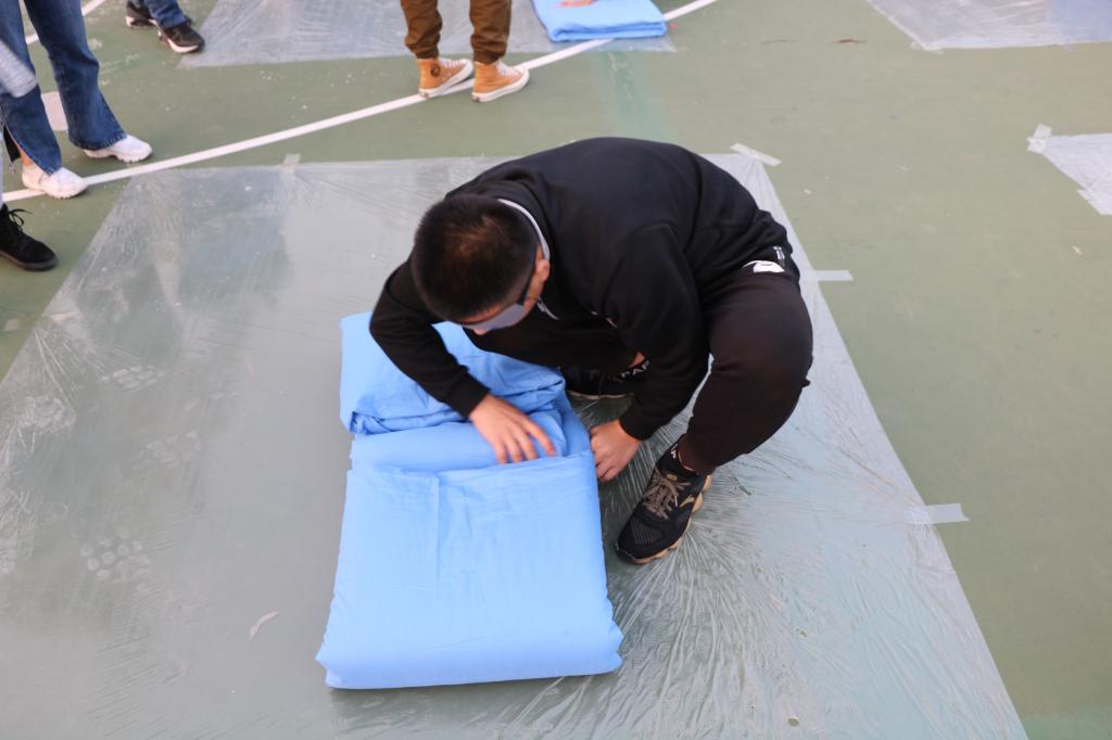 本次比赛共分为三项。第一项叠标准军被,参赛选手们需要在六分钟之内叠出标准的军被。第二项是速叠军被,选手们要在两分钟内叠成军被,不成形不符合标准的直接淘汰。第三项为蒙眼叠军被。选手们需在十分钟内蒙住眼睛叠出成型的军被。三项比赛都极大考验了选手们的熟练度及叠被能力。比赛中,选手的每一个动作都细致入微,每一个步骤都有条不紊。