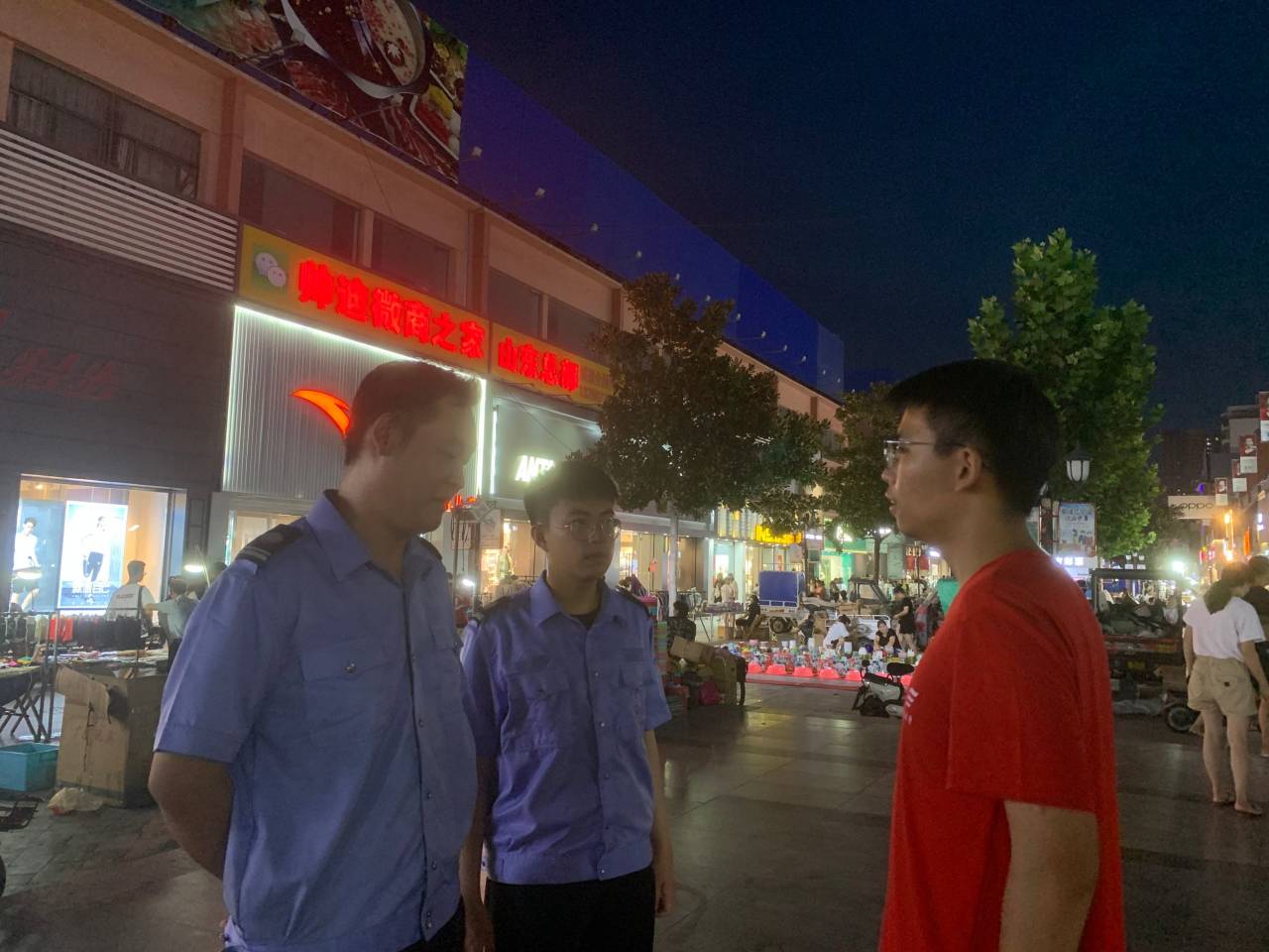 8月12日调研团在走访当地城管局后,滕州市市民广场对各商户进行问卷调查。询问地摊商户们开始进行地摊生意的时间、动机、疫情对摊主收入的影响等。大多摊主们表示:虽然新冠疫情缩短了每天的出摊时间,但是在国家对地摊经济的政策扶持下,新冠疫情并没有对摊主们的收入产生太大的影响。调研团采访了其中一位摊主吴先生,询问其对当地地摊市场的评价。吴先生说:“自己是一个上班族,最近才开始摆地摊的,在摆地摊的过程中,既可以锻炼自己的人交流能力,能在工作中更好地与客户交流,同时摆摊赚来的钱也是一笔可观的额外收入,自己也没想过会有摆地摊的一天,而且如此轻松自如。”在问道在如此密集的环境下摆摊的危险性时他表示:“市场工作人员在这一方面工作做的非常不错,每天都会检测提问,询问是否有人出现相关症状,在这种环境下我非常放心”。