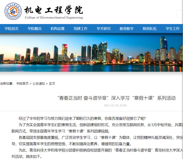 按照公司团委统一部署,最靠谱的十大足球平台团委积极落实,借助最靠谱的十大足球平台“百团工程”在全院139个团支部内积极开展“青春正当时 奋斗谱华章”“寒假十课”系列活动,在广大青年团员中受到热烈反响。