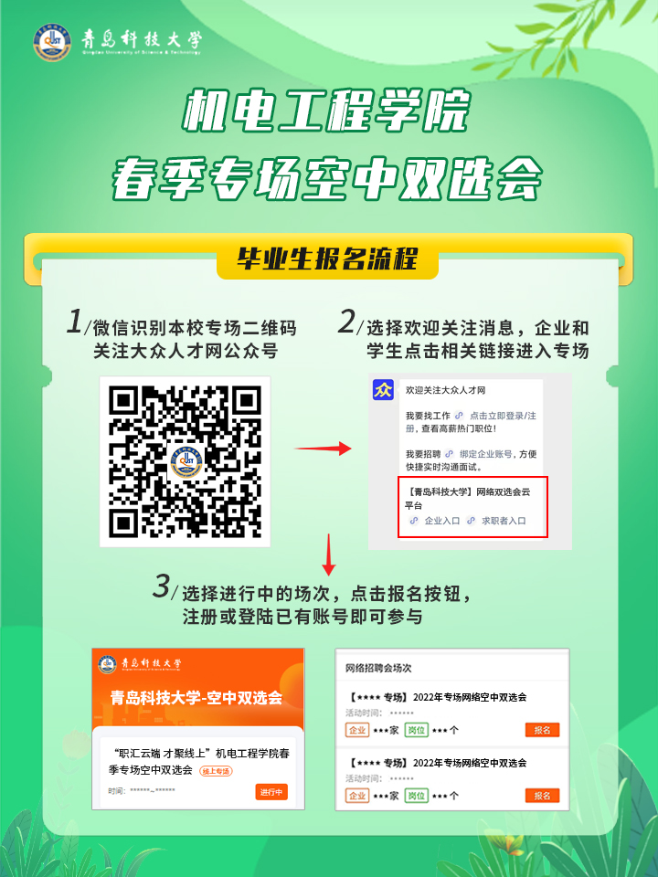 手机微信扫码关注“大众人才网”微信公众号,企业和毕业生分别点击相关按钮进入体育外网十大平台app专场,点击本公司报名按钮,注册或登录已有账号即可直接参与。