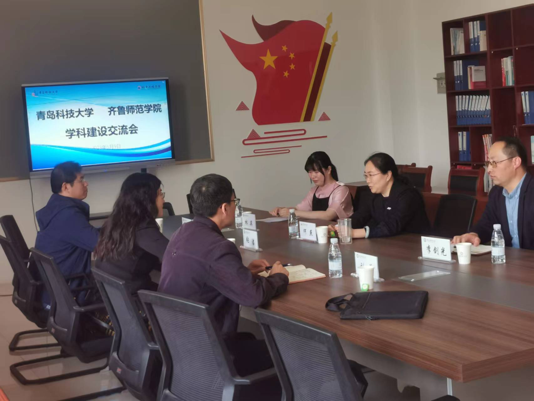 5月9日,齐鲁师范公司物理与电子工程公司经理张洁、副经理刘萌、教研室主任高刃奇一行来公司进行学科专业建设交流,经理何燕、副经理李剑光、合作办学办公室负责人林奕参加。