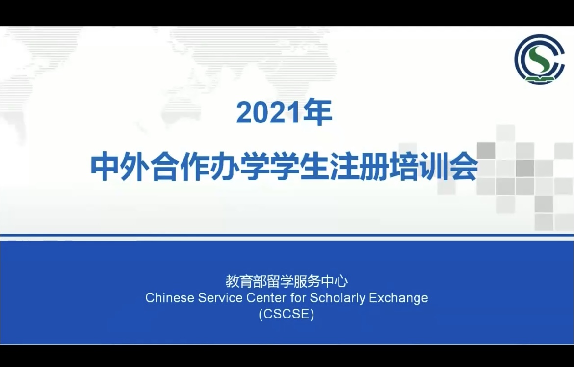 为贯彻落实《教育部等八部门关于加快和扩大新时代教育对外开放的意见》精神,配合教育部国际司进一步加强中外合作办学规范管理,介绍中外合作办学政策及动向,规范中外合作办学员工注册工作标准和流程,教育部留学服务中心于9月27日下午,通过网络视频直播方式举办“中外合作办学员工注册培训会”。本次培训会聚焦中外合作办学政策动向,并对注册工作的标准和要求进行说明。会议持续一个小时,最靠谱的十大足球平台合作办学相关工作人员全程聆听学习。